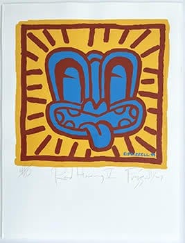 Frizzell has been prolific in printmaking and gives us an extensive number of options: I would choose from amongst his tikis, his four square men, or his kiwiana recipes. His prints typically sell between $1,000 to $1,500. Recent results include Red Haring V ($1,201), Four Four Time ($1,381), and Lisa’s Afghans ($1,434). You can also find a range of limited edition prints by Frizzell through Fishmob.