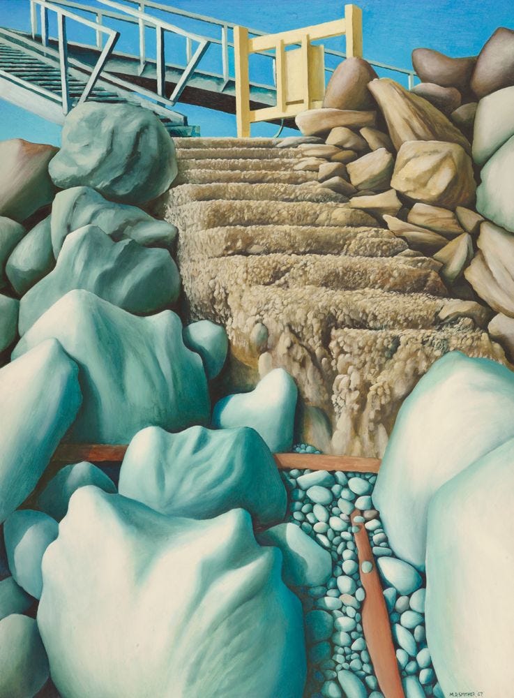 I’m a big fan of Michael Smither’s everyday scenes and nearly chose Toys’ Tea Party. Instead, I went with Railway Station bridge and old step because it’s a great example of his distinctive way of painting rocks: solid, carefully observed, and with a real sense of presence.
