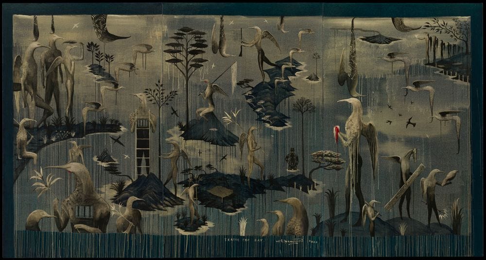 In Traffic Cop Bay, Bill Hammond’s bird-headed figures move through a strange, dreamlike landscape that hints at environmental loss and human impact. To Te Papa’s credit, this work was on display when I visited in 2021. Please keep it there. There’s always something new to notice in this artwork.