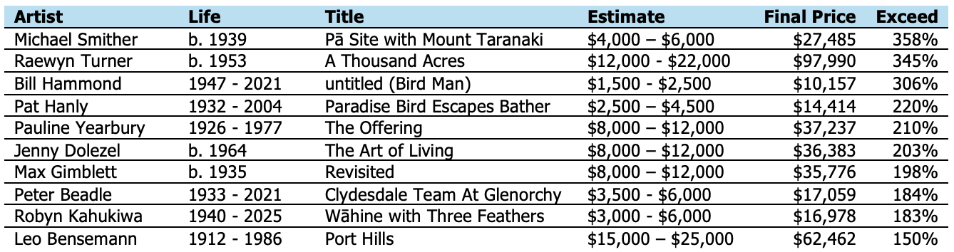 This analysis is drawn from my 2025 New Zealand Art Auction Market Report. A comprehensive, data-driven review of the year’s key results, trends, and pricing signals. What follows is an extended excerpt highlighting the works that most dramatically exceeded expectations. You can download the full report below.