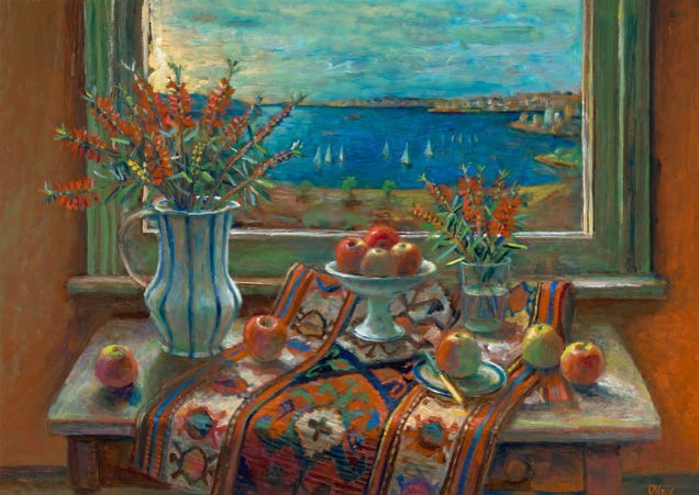 Margaret Olley (1923–2011) is best known for her vibrant still lifes and interiors, transforming the everyday objects of her home and studio into richly layered, intimate compositions.